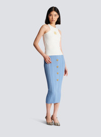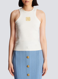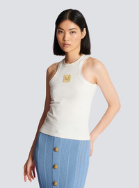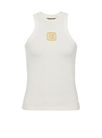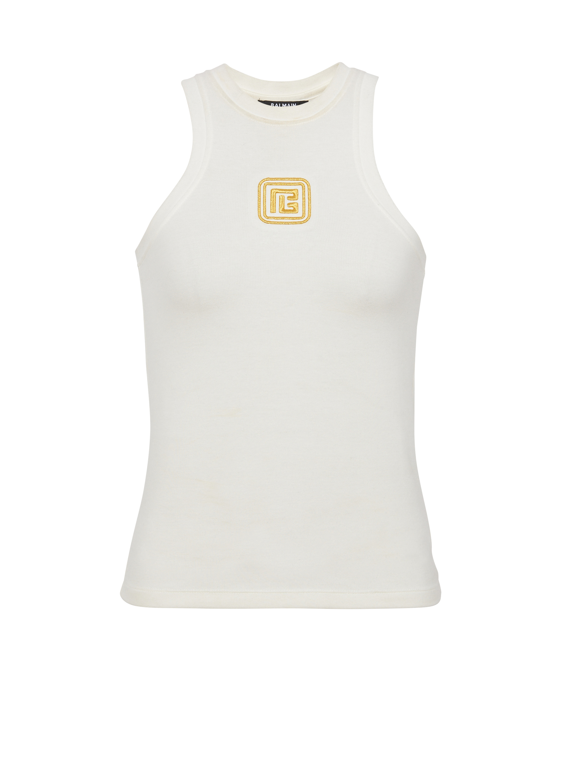 Tank top with Retro PB embroidery - Fitted cut - Sleeveless - Halter neckline - Contrasting retro PB logo embroidered on the front - Ribbed neckline and armholes - Model measures 179cm and wears a size S - Main material: 39% modal 39% cotton 12% elastane 10% polyamide - Made in Portugal - Item: DF1EB045BC49