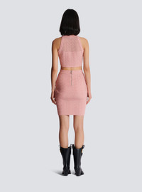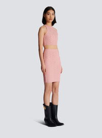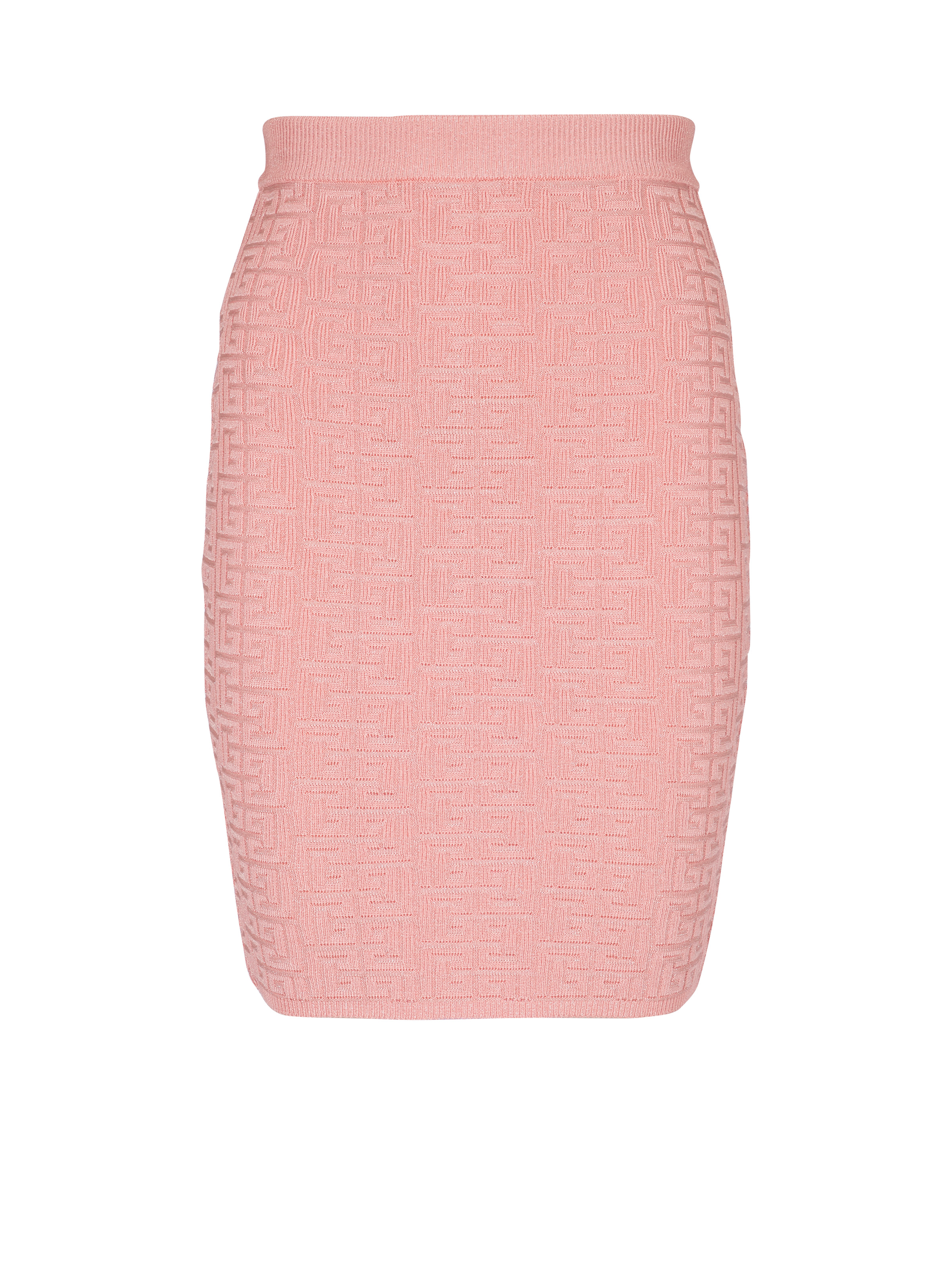 PB Labyrinth knit skirt - Fitted and high-waisted - Knee-length cut - Visible silver metal zip fastening on the back with Balmain Paris-engraved slider - Knit with shiny threads - Ribbed edging - Model measures 178cm and wears a size 36 - Main material: 86% viscose 10% polyester 4% metallic fibre - Made in France - Item: DF1LC056KG96100% of the viscose fibres used to make this garment come from certified, sustainably managed forests