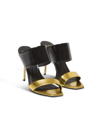PB mules in striped patent and mirror-effect leather - Open square toe - 2 straps - Lacquered gold stiletto heel - PB logo in contrasting patent leather on the back - Leather outsole - Diamond-embossed leather insole - Leather lining - Heel height: 9.5 cm - Main material: 100% calfskin - Made in Italy - Item: EN0UR132LIVS