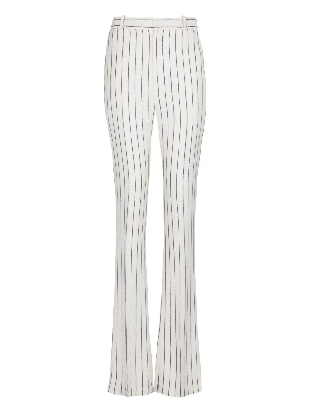 pinstripe flared-leg trousers Highlights - White - Pinstripe pattern - Belt loops - Flared leg Imported Composition Viscose 95%, Linen/Flax 5% Washing instructions Specialist Cleaning