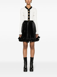 pleated satin mini skirt A lesson in form and technique, this Balmain mini skirt is crafted from pleated black satin and flares out to a ruffled hem that’s piped and double-layered for structure and volume. Highlights - Black - Satin finish - Fully pleated - High-waisted - Layered ruffle hem - Piped-trim detailing - Above-knee length - Full lining - Concealed rear hook and zip fastening Imported Composition Polyester 100% SIZE & FIT Model measurements Height 5 ft 9 in(1.76 m) Bust/Chest 31.1 in(79 cm) Hips 36.61 in(93 cm) Waist 24.8 in(63 cm)