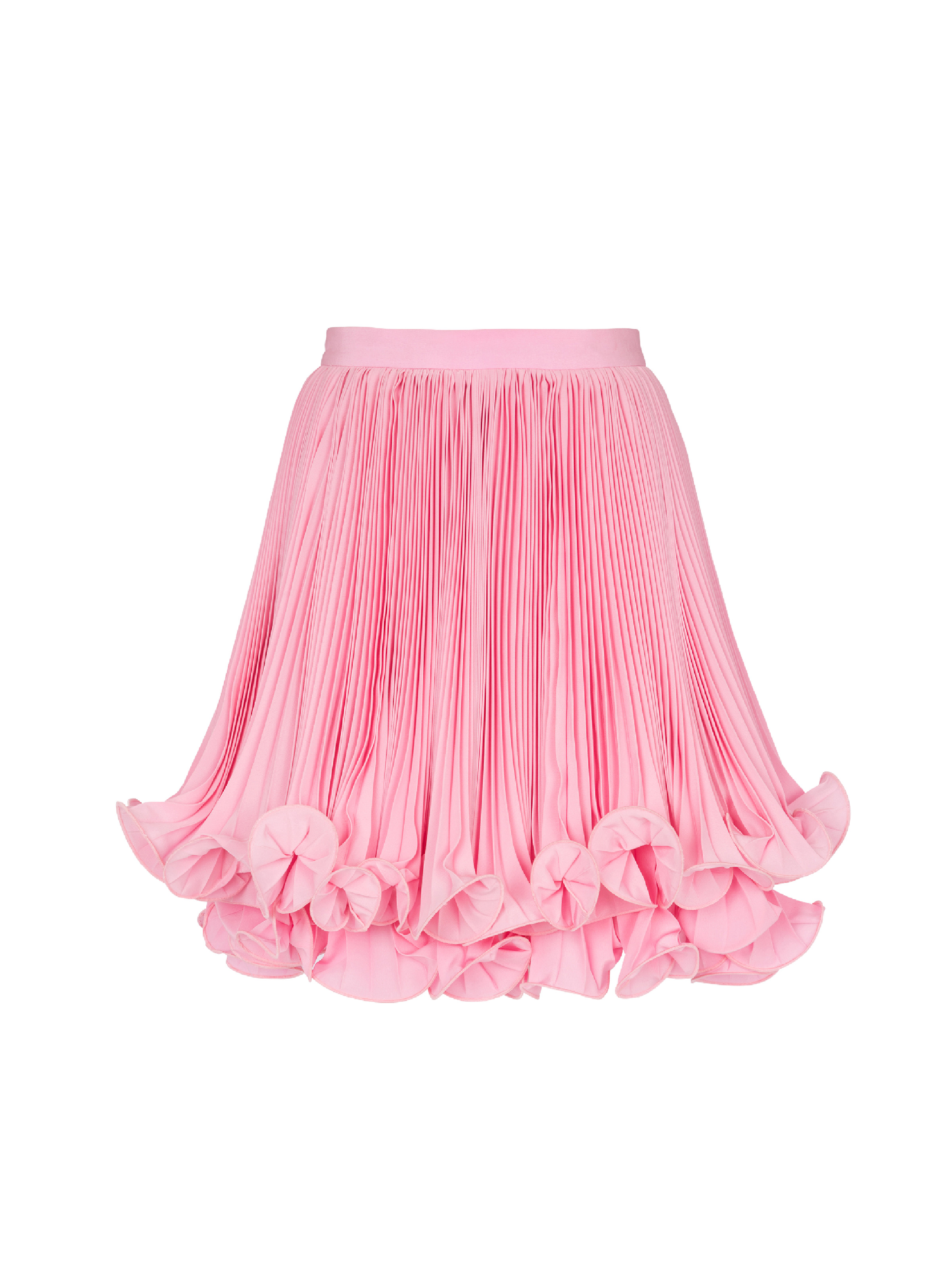 Pleated skirt with ruffles - Short flared cut - Back fastening with invisible zip and 2 hidden hooks - Lightweight crepe, ruffled lining - Model measures 179cm and wears a size 36 - Main material: 100% polyester - Made in Bulgaria - Item: CF0LB436XJ11