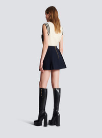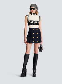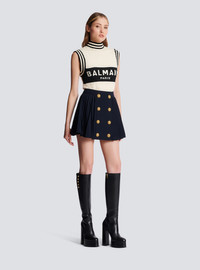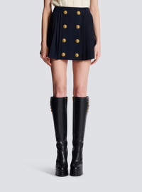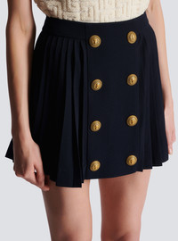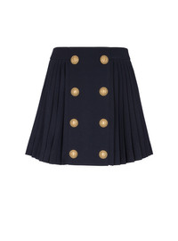 Pleated skirt with two rows of buttons - Short cut - 8 decorative golden metal 'Lion Head' buttons on the front - Smooth front and back, small side pleats - Golden metal zip fastening at the back - Model measures 175cm and wears a size 36 - Material: 100% certified responsible wool - Made in Slovakia - Item: BF1LB875WC09