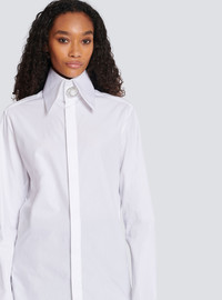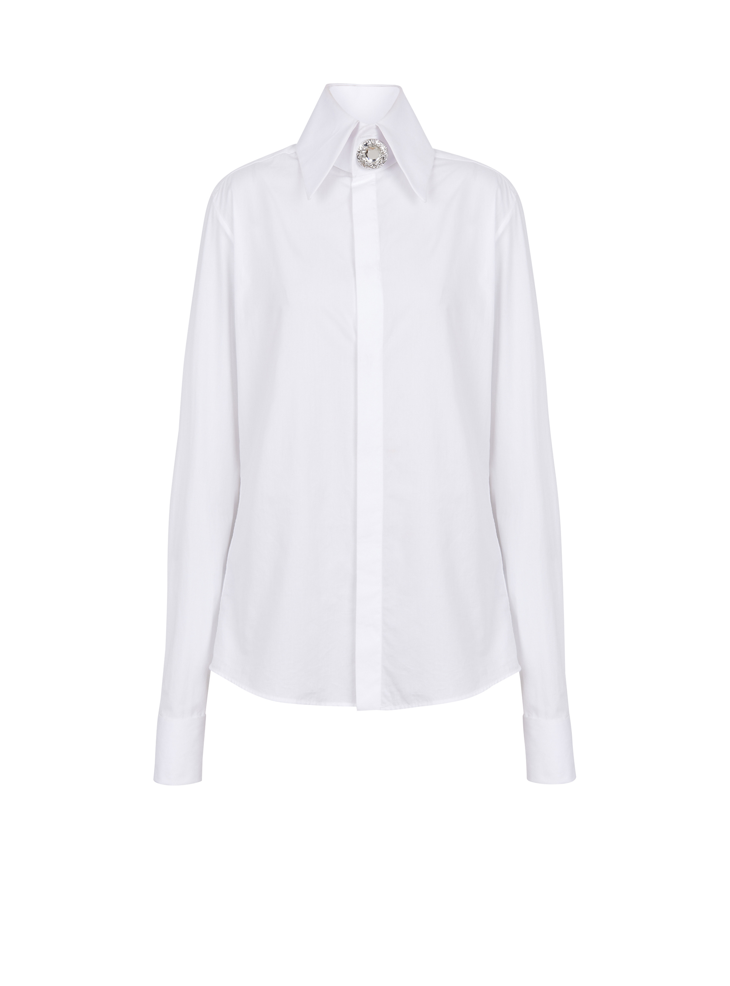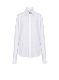 Cotton poplin shirt - Classic collar - 1 decorative jewel button in crystal and silver metal - Cufflinks - Signature Lion buttons in silver metal - Model measures 175cm and wears a size 36 - Material: 100% cotton - Made in Poland - Item: BF0HS291CE48