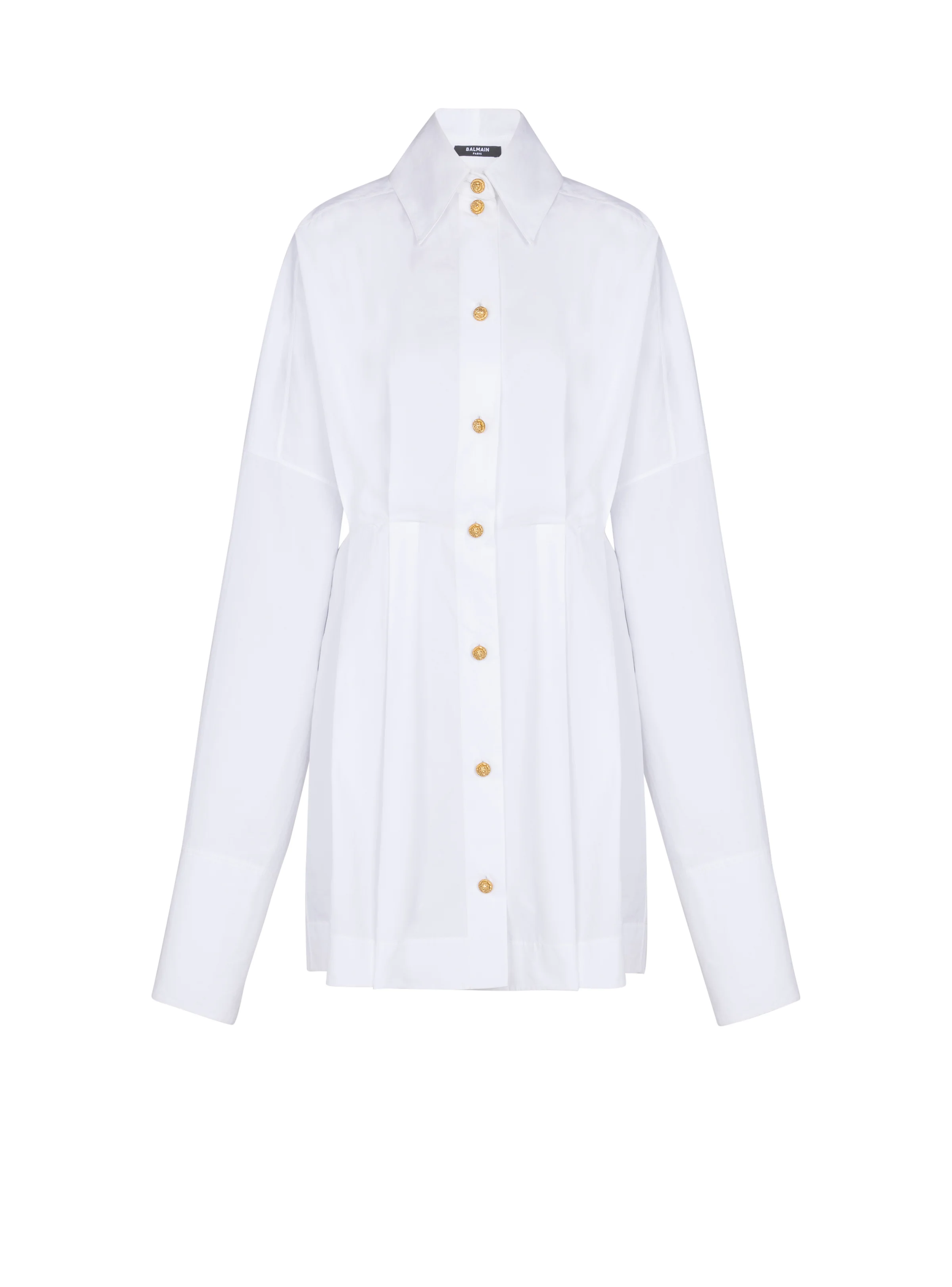 Poplin shirt dress - Large shirt collar - Long sleeves with large, straight buttoned cuffs - "Lion Head" button fastening - Pleats - Short flared cut - Model measures 175cm and wears a size 36 - Main material: 100% cotton - Made in Italy - Item: GF1R9412CB09
