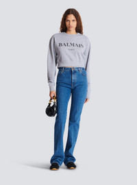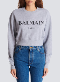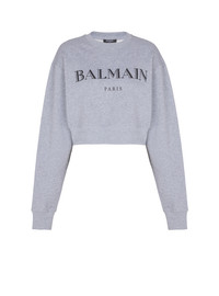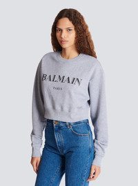 Printed Balmain sweatshirt - Vintage Balmain logo printed on the front - Cropped, relaxed fit - Crew neck - Long sleeves - Ribbed trim - Model measures 178cm and wears a size S - Main material: 100% cotton - Made in Portugal - Item: FF2JO080BD33