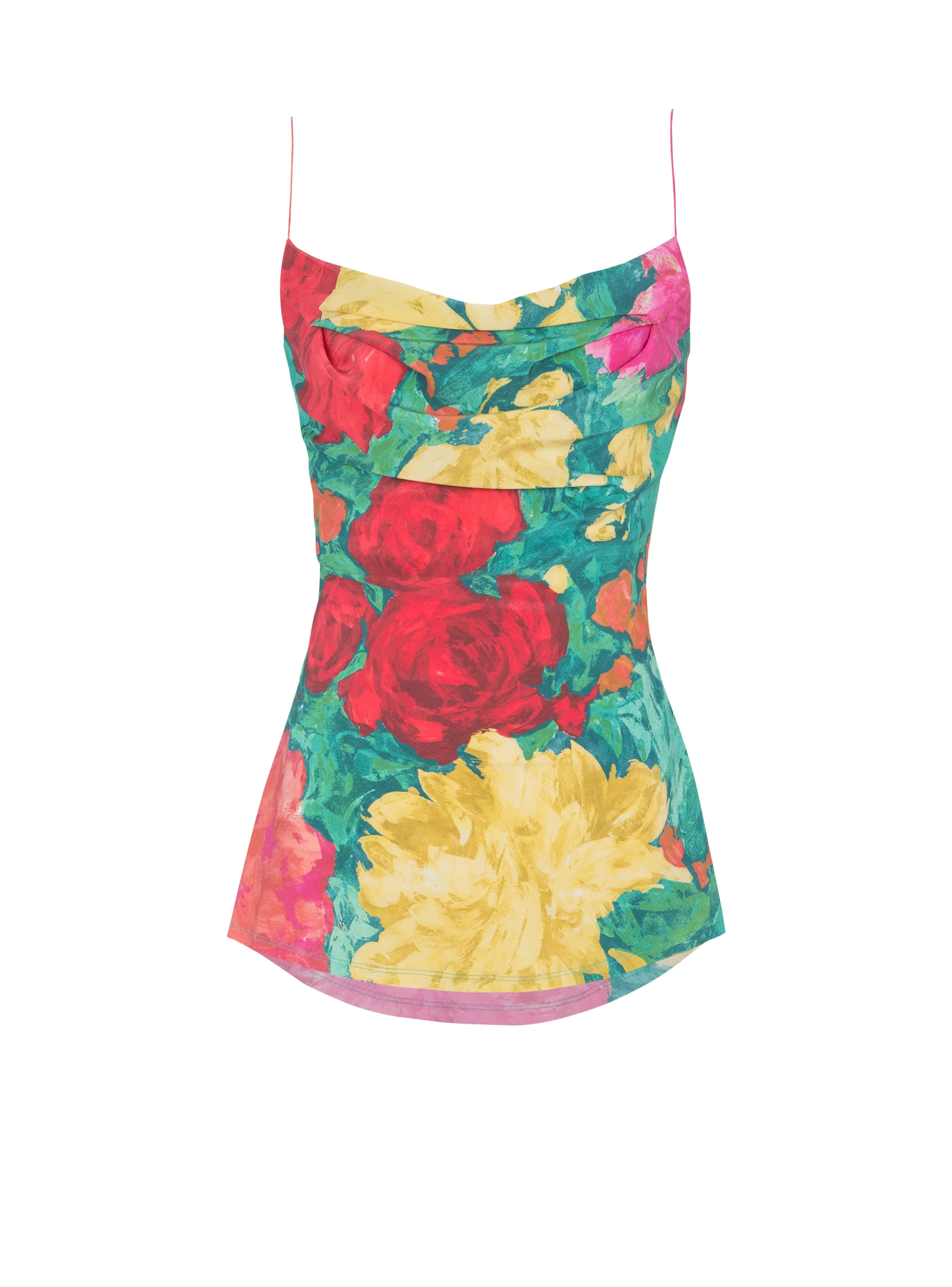 Crepe de Chine top with roses print - Thin straps - Cowl neck - Flowing fit - Model measures 180cm and wears a size 36 - Main material: 100% silk - Made in Portugal - Item: GF1AD400SF38