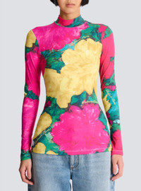 Second-skin top with roses print and Balmain Paris logo - High neck - Long sleeves - Elasticated jersey - Fitted cut - Model measures 180cm and wears a size S - Main material: 80% polyamide 20% elastane - Made in Portugal - Item: GF1EK027GF50