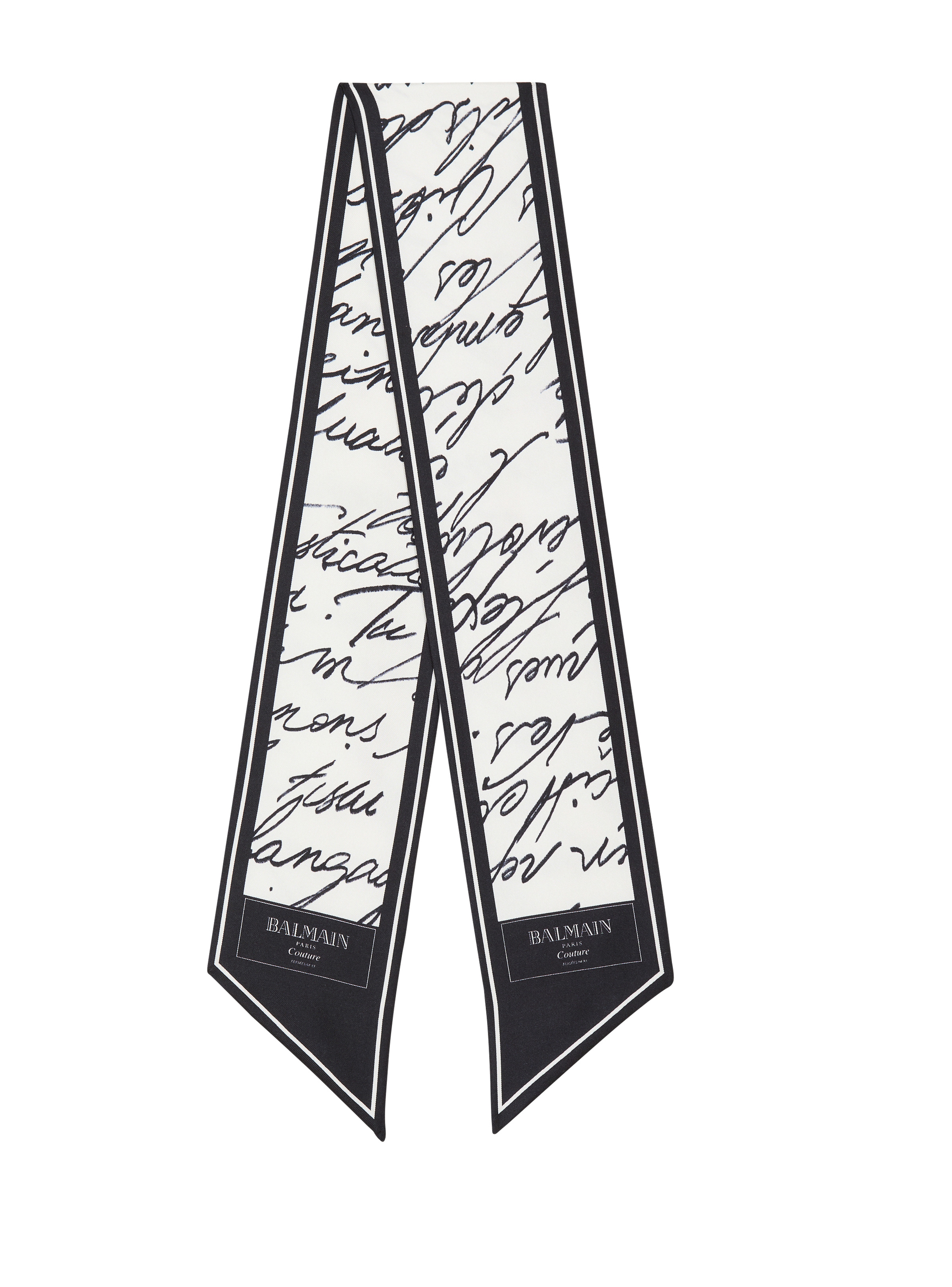 Printed silk "Love Letter" bandana - Reversible - Balmain Couture logos - Dimensions: 96 x 8.5 cm - Main material: 100% silk - Made in Italy - Item: EF1XF090SE90