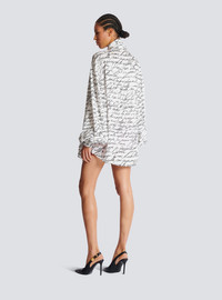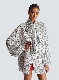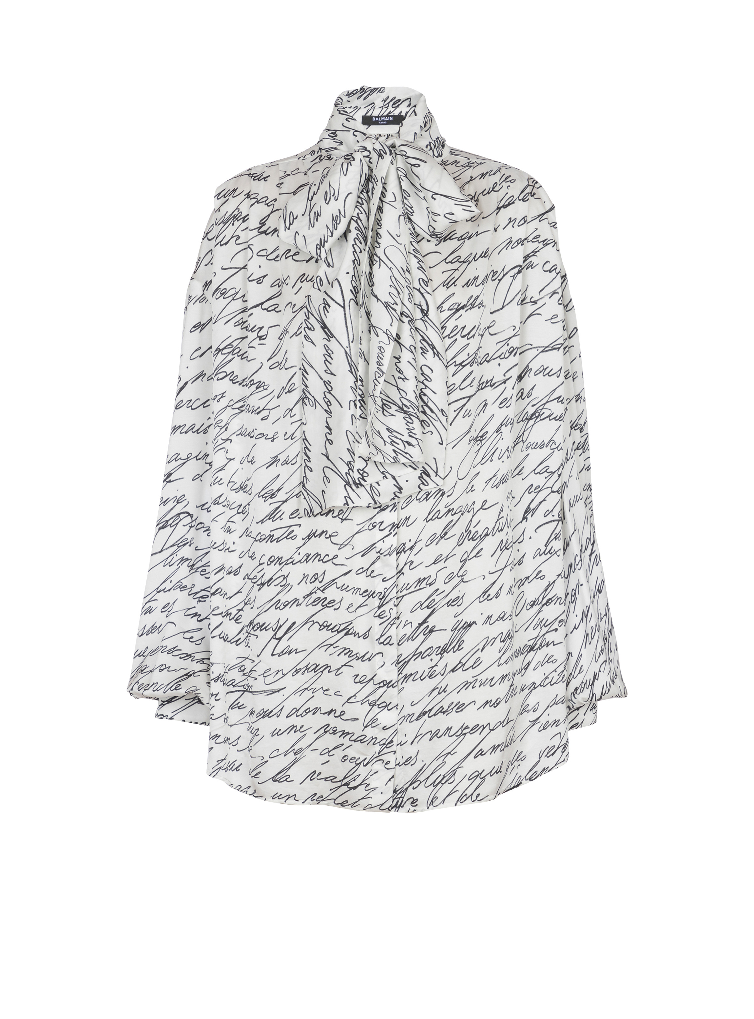 Pussy-bow shirt with "Love Letter" print - Pussy bow collar - Shoulder pleats - Long sleeves - Straight press-stud cuffs - Front fastening with press studs - Rounded hem - Long, relaxed fit - Model measures 179cm and wears a size 36 - Main material: 100% viscose - Made in Italy - Item: EF1HT020VH61