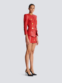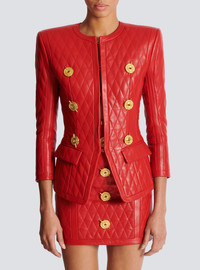 6-button edge-to-edge jacket in diamond-quilted lambskin - Round neckline - Structured shoulders - Long sleeves - Straight cuffs with 5 buttons - 6 decorative buttons on the front - Gold metal "bobbin" buttons - Edge-to-edge hook fastening - 2 side slash pockets with flaps - Inside slash pocket - Twill lining - Fitted cut, nipped-in waist - Model measures 179cm and wears a size 36 - Main material: 100% lambskin - Made in Turkey - Item: EF1SK725LD01