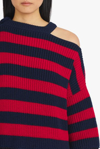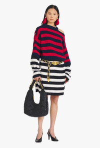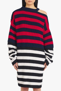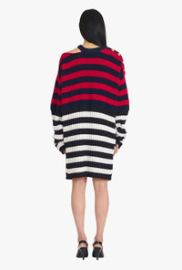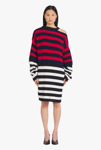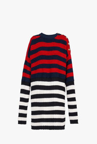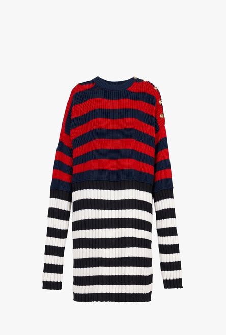 Red and black striped mid-length dress Long sleeves, embossed gold-tone buttons ITEM INFORMATION - Casual cut - The model is wearing FR size 36 - The model's height is 173 cm / 5'8 in, bust 85 cm / 33.5 in, waist 61 cm / 24 in, hips 92 cm / 36 in - Made in Italy - Materials: 58% Virgin wool, 35% Lyocell, 7% Polyamide - Item: WF0RF020K339MAU