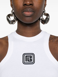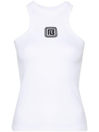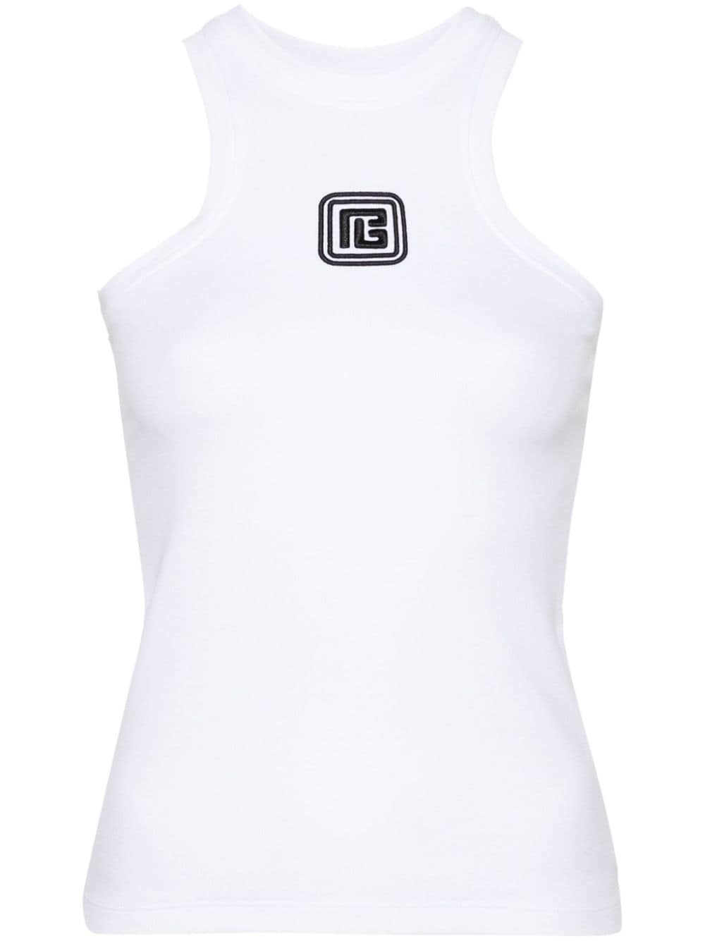 Retro PB tank top This white tank top is embroidered with the Retro PB motif in black threads at the front: a homage to Pierre Balmain's legacy. The ribbed crew neck and racerback back lend it a sporty sensibility. Highlights - White - Cotton-modal blend - Stretch-design - Jersey texture - Ribbed trim - Crew neck - Sleeveless - Embroidered logo to the front - Racerback - Straight hem Imported Composition Modal 39%, Cotton 39%, Elastane 12%, Polyamide 10% SIZE & FIT Model measurements Height 5 ft 11 in(1.81 m) Bust/Chest 32.67 in(83 cm) Hips 35.43 in(90 cm) Waist 23.62 in(60 cm) FittingInformation Designed for a close fit throughout Made from a midweight stretch fabric, this piece offers elasticity and flexibility when worn This piece fits true to size – take your usual size