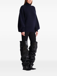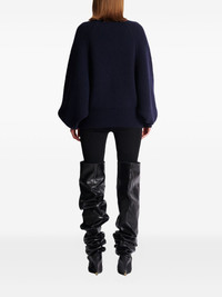 ribbed-knit logo-patch sweater Highlights - Blue - Ribbed knit - High neck - Balloon sleeves - Long sleeves - Logo patch Made in France Composition Wool 100% Washing instructions Read Manufacturer Guidelines