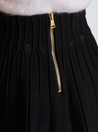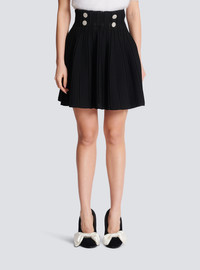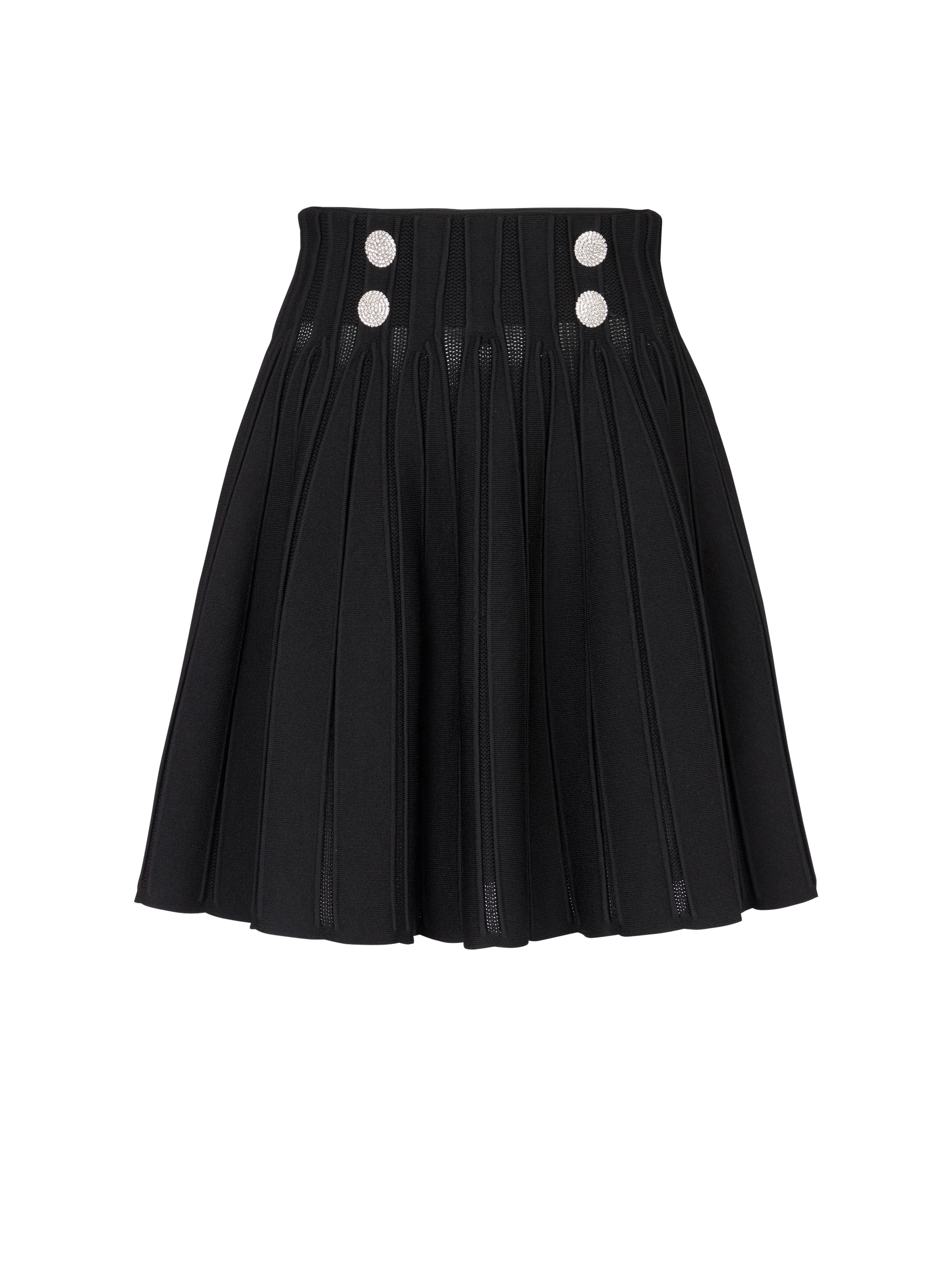Skater skirt in a textured ribbed knit - Flared shape, marked waist - 4 crystal-embellished buttons - Golden metal zip fastening at the back - Model measures 176cm and wears a size 36 - Material: 88% viscose, 12% polyester - Made in Italy - Item: BF0LB927KF13 100% of the viscose fibres used to make this garment are recycled and RCS-certified
