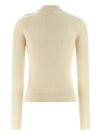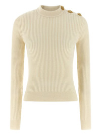 ribbed coin- button sweater Highlights - Off-white - Ribbed knit - Crew neck - Long sleeves - Coin buttons Made in France Composition Cashmere 50%, Virgin Wool 50% Washing instructions Read Manufacturer Guidelines