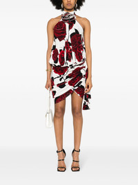 rose-print mini dress Highlights - White/multicolour - Jersey texture - All-over rose print - Halterneck - Floral applique to the neck - Sleeveless - Fitted waistline - Draped detailing to the skirt - Thigh-length - Sash detail - Unlined - Asymmetric hem - Rear zip fastening Made in France Composition Viscose 100% SIZE & FIT Model measurements Height 5 ft 10 in(1.77 m) Bust/Chest 33.07 in(84 cm) Hips 37 in(94 cm) Waist 24.8 in(63 cm) FittingInformation Designed for a loose fit at the chest and waist with a close fit at the hips Made from a midweight non-stretch fabric, this piece offers minimal elasticity when worn This piece fits true to size – take your usual size