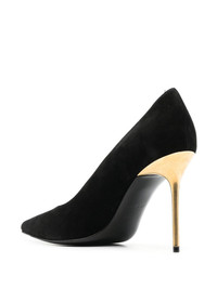 pointed-toe stiletto-heel pumps Balmain's sophisticated design style is reflected on this pair of pointed-toe pumps from the SS23 collection through their sleek silhouette and understated yet opulent detailing such as the gold-tone hardware stiletto heel. Made in Italy Composition Lining: Calf Suede 100% Outer: Calf Leather 100% Sole: Calf Leather 100% SIZE & FIT Measurement HEEL 3.93 in(10 cm)