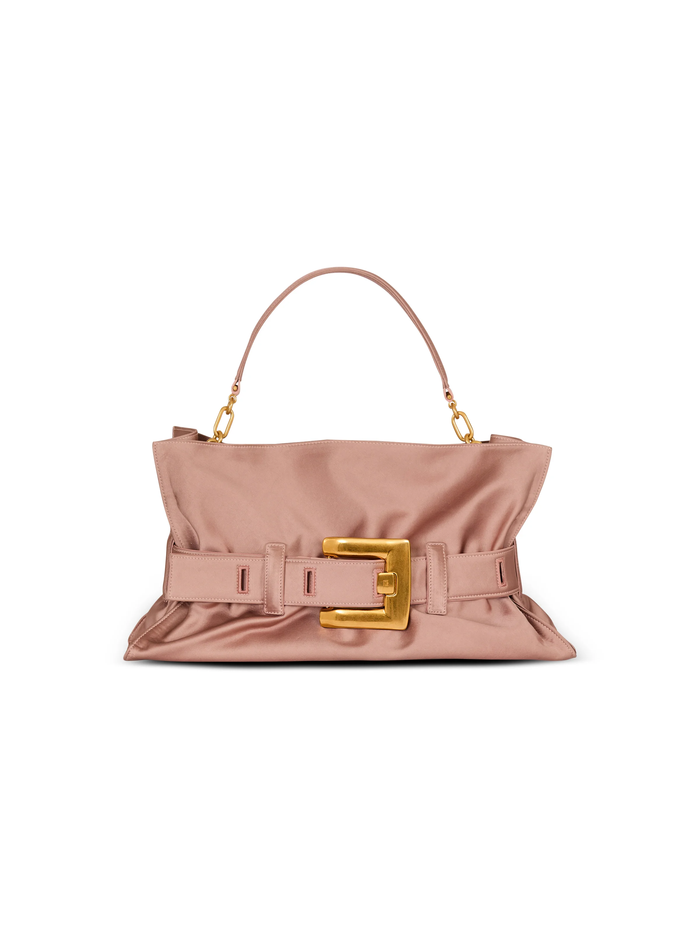 Satin Anthem Shoulder bag - Soft belted style - Carry in the hand or wear on the shoulder - Covered leather handle and chain - Covered leather belt and belt loops - Metal PB-engraved buckle - Metal PB logo on the back - Press-stud fastening - Embossed leather inside card pocket - Leather lining - Gold hardware - Dimensions: 35 x 20 x 8 cm - Main material: 60% viscose 40% cotton - Made in Italy - Item: EN0KK990TLYS