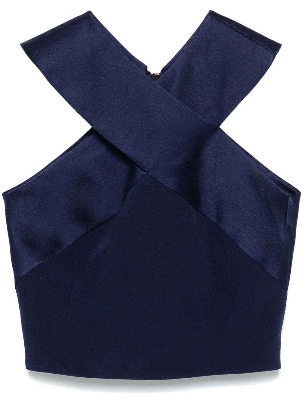 satin-trim top Highlights - Imperial blue - Satin trim - Rear zip fastening - Crossover neck - Sleeveless - Full lining - Cropped Imported Composition Outer: Viscose 100% Lining: Viscose 52%, Cotton 48% SIZE & FIT Model measurements Height 5 ft 10 in(1.79 m) Bust/Chest 33.07 in(84 cm) Hips 37 in(94 cm) Waist 25.19 in(64 cm) FittingInformation Designed for a slim fit that sits just away from the body offering a close yet comfortable fit Cropped in length Made from a midweight non-stretch fabric