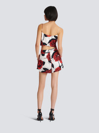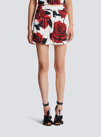 Satin shorts with Red Roses print - High waist - Fluid fabric - Italian pockets on the front - 2 patch pockets on the back - Waistband - Back fastening with invisible zip and hook - Pierre Balmain logo integrated into the print - Model measures 179cm and wears a size 36 - Main material: 100% viscose - Made in Italy - Item: CF0PA235VE76100% of the viscose fibers in this garment come from sustainably managed forests and certified