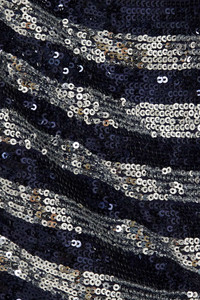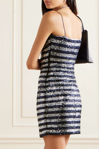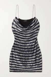 EDITORS'NOTES Designed to sparkle from every angle, Balmain's dress is drenched in light-catching silver and midnight-blue sequins that make classic stripes feel instantly glamorous. It's cut from mesh that's draped to create an elegant cowl neckline and has pin-thin straps. Style yours with metallic sandals and simple jewelry. SIZE & FIT - Fits true to size, take your normal size - Designed for a slim fit - Mid-weight, heavily embellished, slightly stretchy fabric - Model is 175cm/ 5'9" and is wearing a FR 36 DETAILS & CARE - Midnight blue and silver sequined mesh - Slips on - 92% polyamide, 8% elastane; lining: 52% viscose, 48% cotton - Dry clean