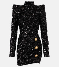 Olivier Rousteing breathes new life into Balmain, respecting the house’s couture heritage with modern relevance. This sequined minidress is a picture-perfect example. Product Details - Material: 100% polyester - Care instructions: specialist clean - Made in France - Designer color name: Noir/Blanc - Item color: black, white - Material II: 77% acetate, 23% viscose - Lining: 52% viscose, 48% cotton - Trim: 100% polyester - Details: 100% faux pearls - Shoulder pads - Hardware color: gold - Closure: zipped back - Item number: P01026123