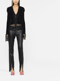 sheer tie-front knit jacket black front tie fastening extra-long sleeves semi-sheer construction plunging V-neck Made in France Composition Viscose 49%, Polyamide 31%, Polyester 20% SIZE & FIT Model measurements Height 5 ft 10 in(1.77 m) Bust/Chest 32.67 in(83 cm) Hips 35.43 in(90 cm) Waist 23.62 in(60 cm)