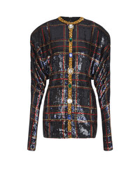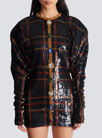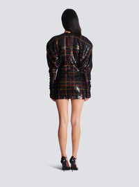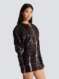 Short embroidered plaid dress - Round neck - Long batwing sleeves - Embroidery - Matching zip fastening on the back with Balmain Paris-engraved slider - Fitted cut - Model measures 175cm and wears a size 36 - Main material: 74% acetate 26% viscose - Made in India - Item: GF1R9419PD35