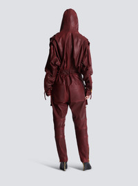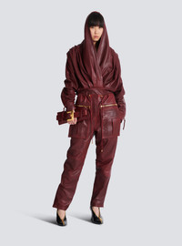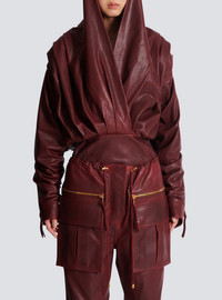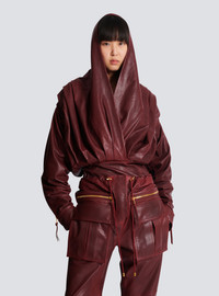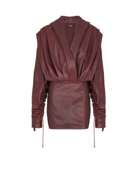 Short hooded dress in washed lambskin - V-shaped wrap neckline with draping - Long batwing sleeves with straight topstitched cuffs and a hidden press stud - Volume of sleeves can be adjusted using cord and PB-engraved stopper - Under-placket zips with Balmain Paris-engraved sliders at the bottom of the sleeves - Invisible side zip fastening - Lined - Relaxed fit at the top, straight at the skirt - Model measures 178cm and wears a size 36 - Main material: 100% lambskin - Made in Turkey - Item: FF0R9392LE05