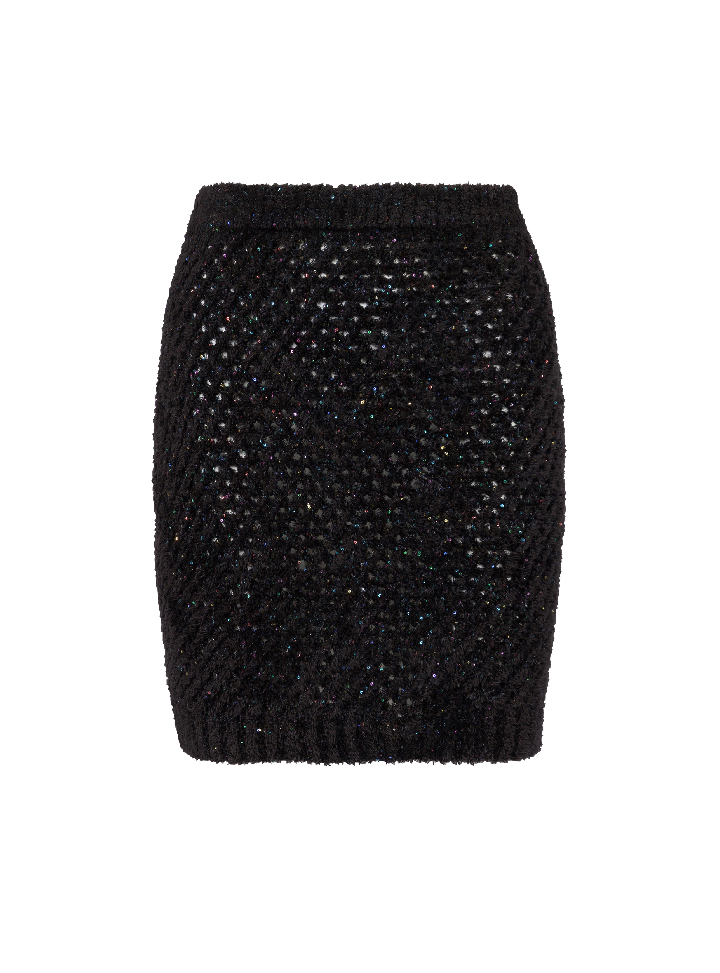 Short knitted skirt - Tight fit, high waist - Golden metal zip fastening at the back - Ribbed edging - Model measures 179cm and wears a size 36 - Material: 64% polyamide, 36% silk - Made in Italy - Item: BF0LB005KF11
