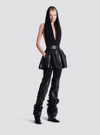 Short pleated faux leather skirt - Waistband - Wide knife pleats - Side slash pockets integrated into a pleat - Visible zip fastening on the back with Balmain Paris-engraved slider - Flared cut - Model measures 180cm and wears a size 36 - Main material: 100% polyurethane - Made in Bulgaria - Item: FF0LBB09XH82