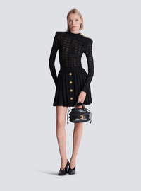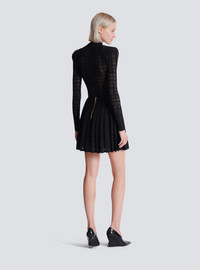 Short pleated skirt in plaid knit - Waistband - Decorative "Lion Head" buttons on the front - Visible zip fastening on the back with Balmain Paris-engraved slider - Flared cut - Model measures 180cm and wears a size 36 - Main material: 77% viscose 14% polyester 8% polyamide 1% elastane - Made in France - Item: GF1LB664KJ34100% of the viscose fibres used to make this garment come from certified, sustainably managed forests