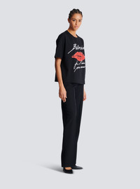 Balmain Letters T-shirt with Kiss print - Round neck with ribbed trim - Short sleeves - Contrasting flocked Balmain logo and "Je t'aime mon amour" lettering on the front - Contrasting Kiss motif printed on the front - Woven Balmain Couture label on the back - Regular fit - Model measures 179cm and wears a size S - Main material: 100% cotton - Made in Portugal - Item: EF1EG110GE45100% of the cotton fibres used to make this garment are certified and organically farmed