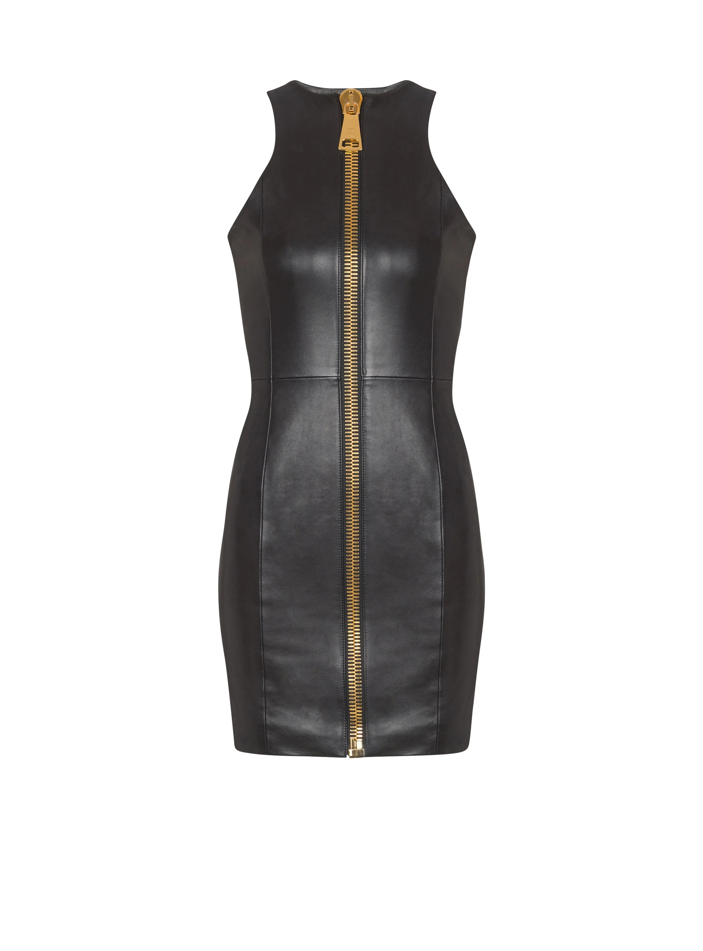 Short sleeveless lambskin dress - Round neckline - Visible full-length zip with oversized PB-engraved slider - Inset details - Lined - Short fitted cut - Model measures 180cm and wears a size 36 - Main material: 100% lambskin - Made in Turkey - Item: FF0R5198LD63