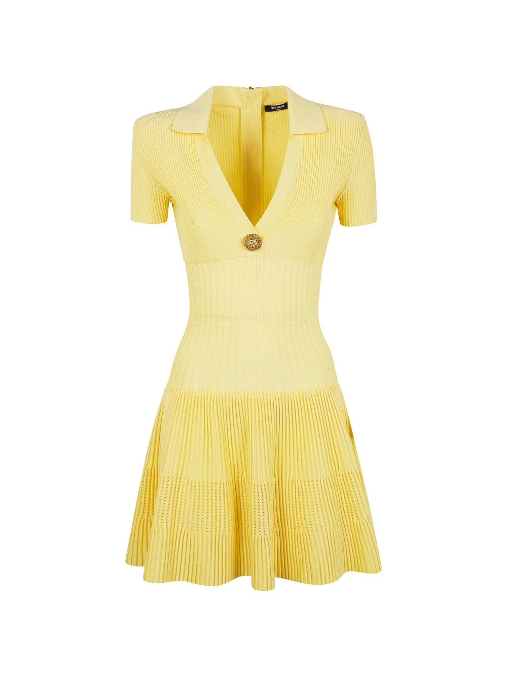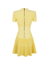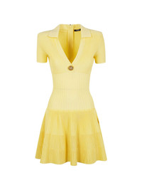 lion-button ribbed dress Highlights - Light yellow - Ribbed - Lion head button - V-neck - Short sleeves - Rear zip-up fastening Made in Italy Composition Viscose 85%, Polyester 15% Washing instructions Read Manufacturer Guidelines