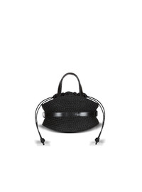 Shuffle Mini bag in calfskin and raffia - Belted style - Carry in the hand, on the shoulder or across the body - Adjustable and detachable leather shoulder strap with stud buttons - Leather handles - Belt with metal PB-engraved buckle - Embossed gold Balmain Paris logo on the front - Inside bag with drawstring ties - Fastening with adjustable leather tie - Leather lining - Gold hardware - Dimensions: 10 x 23 x 13 cm - Main material: 100% polypropylene - Made in Italy - Item: GN1DP017TFRF