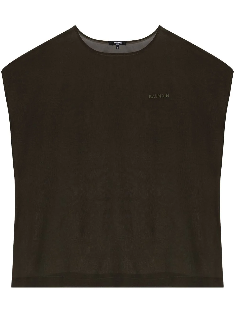 logo-embroidered T-shirt Highlights - Dark green - Semi-sheer construction - Round neck - Short sleeves - Straight hem Made in Italy Composition Silk 100%