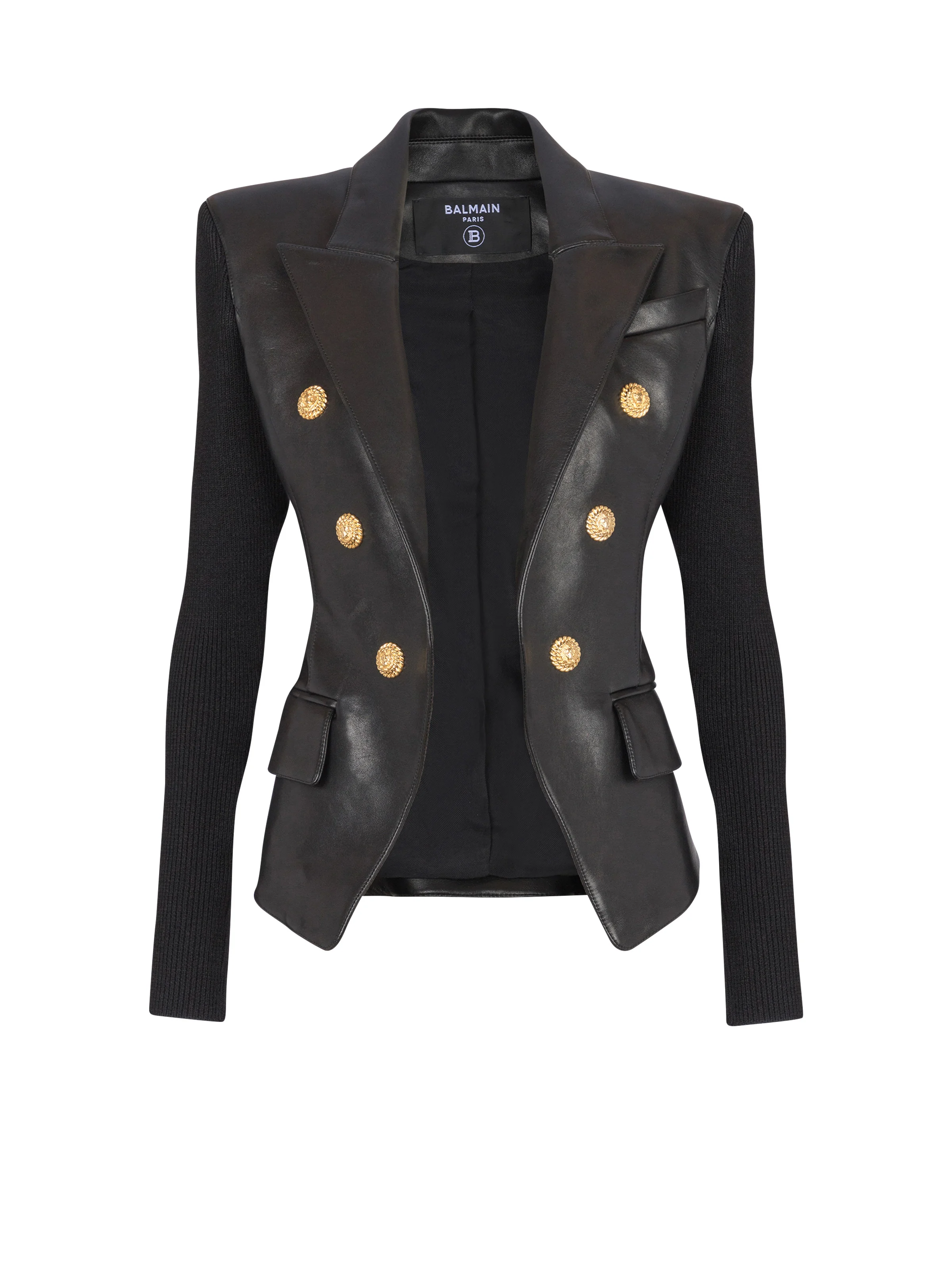 Six-buttons knit lambskin leather jacket