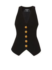 Sleeveless double crepe waistcoat - Tight fit - V-neck - Fastening with 5 decorative "Roses" press studs in gold metal - Model measures 175cm and wears a size 36 - Main material: 100% virgin wool - Made in Romania - Item: CF0SA285WB86