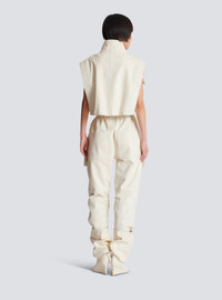 Sleeveless lambskin jumpsuit - Wide high collar - Multiple patch and zip pockets - Adjustable waist with elasticated cord and cord lock - Knee panels and topstitched details - Straight relaxed fit - Model measures 178cm and wears a size 36 - Main material: 100% lambskin - Made in Turkey - Item: FF0QO025LE04