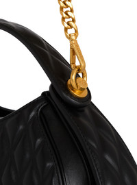 Small diamond-quilted leather Jolie Madame bag - Carry in the hand, on the shoulder or across the body - Leather and chain shoulder strap, adjustable and detachable with snap hooks - Leather handle with engraved B logos and rings - Structured side panels - Metal Balmain Paris logo on the front - Magnetic fastening and leather tab - Engraved metal bag feet - Inside leather card pocket, embossed Balmain logo - Leather lining - Gold hardware - Dimensions: 8.5 x 28.5 x 21 cm - Main material: 100% calfskin - Made in Italy - Item: EN1DA942LHLB