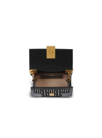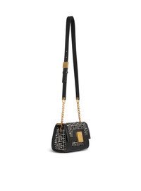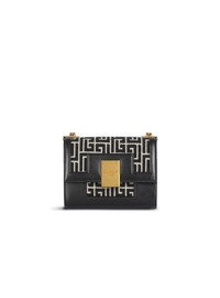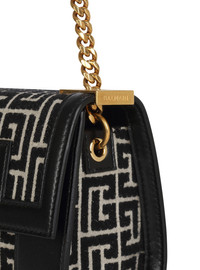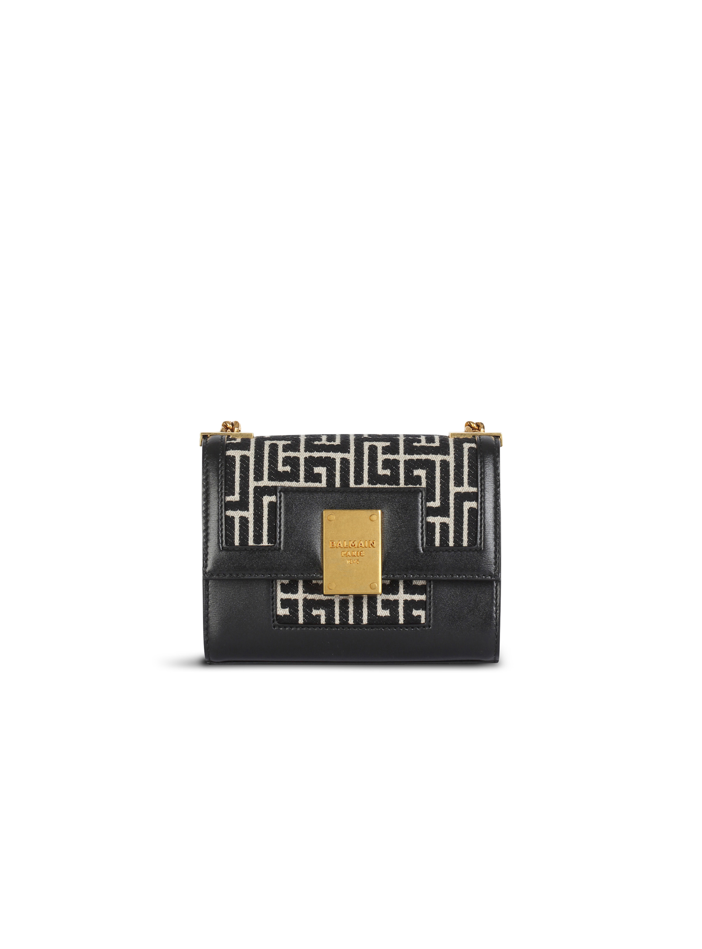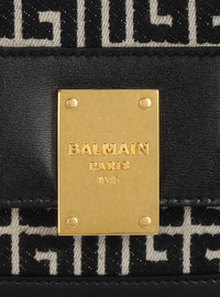 Bicolor calfskin jacquard 1945 bag - Small size - detachable bimaterial handle with a chain in a burnished gold finish and leather shoulder protector - “Balmain Paris 1945” magnetic clasp in a burnished gold finish - interior flat pocket - Three carrying options: shoulder - crossbody - or hand - Protective pouch provided - Size: 8.5 x 18 x 13.5 cm / 3.3 x 7.1 x 5.3 in - Main materials: Cotton, Polyester, Calfskin - Made in Italy - Item: WN1BJ651TJGH