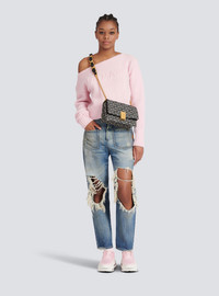 1945 Soft bag with jacquard monogram - Small model - Chain and leather handle - Magnetic clasp with “Balmain Paris 1945” exterior plaque in antique gold effect - Comes with a protective cover - Dimensions: 24 x 15 x 8 cm - Material: 84% cotton, 16% polyester - Made in Italy - Item: AN1BJ778TJNA