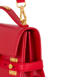Smooth leather B-Buzz 24 bag - Thin removable leather shoulder strap and handle - Flap closure with B-Twist clasp - Engraved golden metal Balmain B logo on the front - Engraved golden metal Balmain plaque on the handle - 2 compartments, 1 card holder and a patch pocket on the inside - Golden hardware - Smooth leather lining - Dimensions: 24 x 4 x 14.5 cm - Main material: 100% calfskin leather - Made in Italy - Item: DN1DA828LAVE