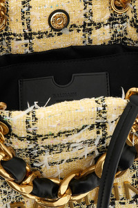cod. GN1FD871TTWNAAA 'Soft Cabas Small' shopping bag in tweed with micro-sequin thread and fringed details, magnetic closure, double fixed leather handle and metal chain, side automatic for gusset opening. Front application of metal lettering logo. Color: Multicolor Size & Fit: W 27 X H 20 X D 10 CM Composition: 50% polyester 25% cotton 25% polyamide