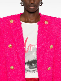 Spencer jacket Highlights - Pink - No fastening - Buttoned cuffs - Peak lapels - Embossed gold-tone buttons Imported Composition Outer: Polyamide 100% Lining: Viscose 52%, Cotton 48% SIZE & FIT Model measurements Height 5 ft 10 in(1.77 m) Bust/Chest 32.28 in(82 cm) Hips 35.03 in(89 cm) Waist 25.19 in(64 cm) FittingInformation Designed for a slim fit that sits just away from the body offering a close yet comfortable fit The internal shoulder pads offer a structured shape Made from a midweight non-stretch fabric