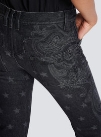 Star and paisley print denim jeans - Low waist - Slightly flared bootcut fit - 5 classic pockets, Western cut-out detail - Fastening with metal zip and "Balmain Chain" button - Triple belt loops - Balmain Signature logo embroidered on the back pocket - Model measures 179cm and wears a size 36 - Main material: 99% cotton 1% elastane - Made in Italy - Item: CF1MJ125DE16