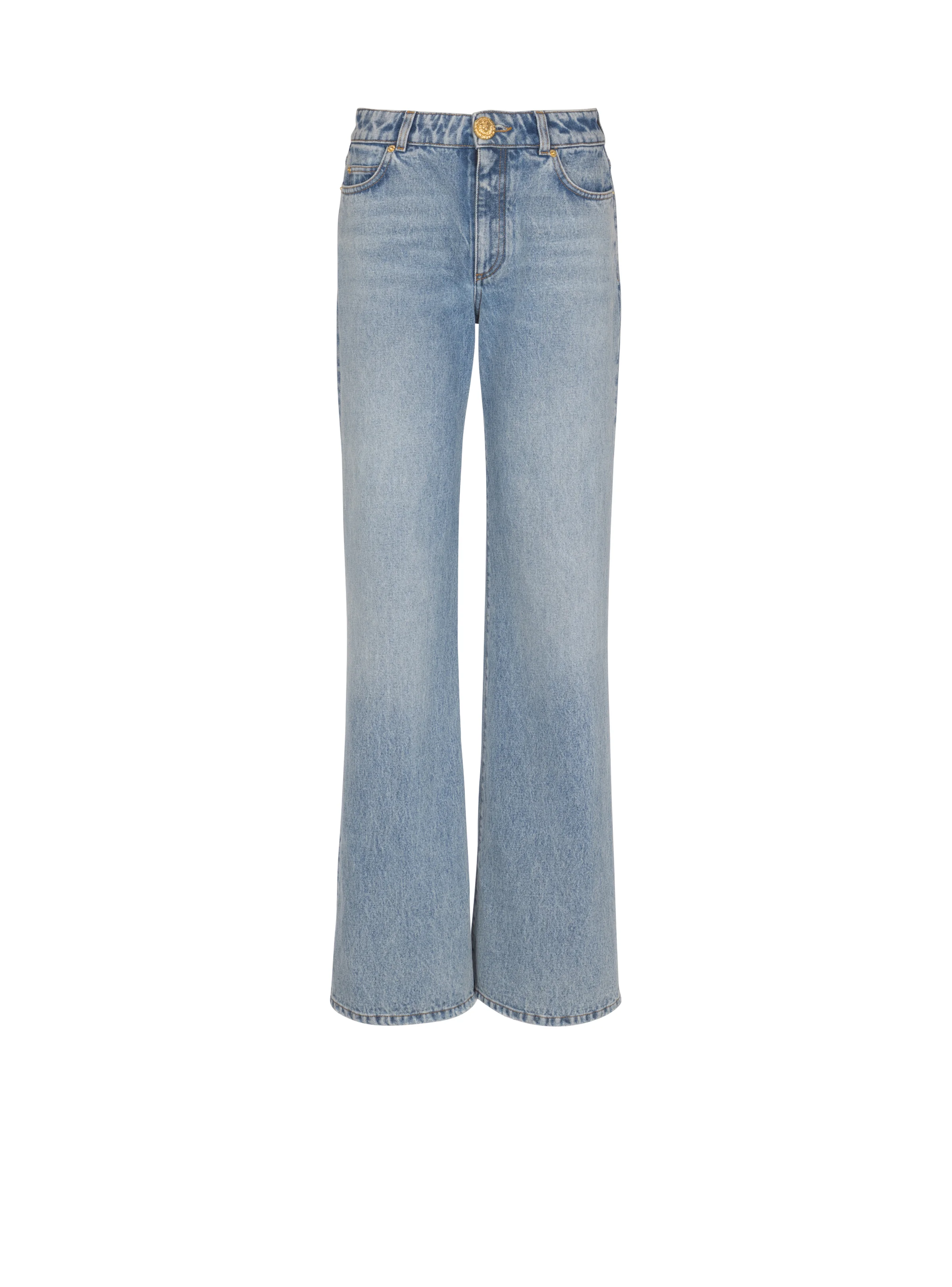 Straight-leg faded denim jeans - 5 pockets - Rivets - "Lion Head" button fastening with zip and fly - Distressed hem - Straight cut - Model measures 179cm and wears a size 36 - Main material: 100% cotton - Made in Romania - Item: FF0MI051DF97