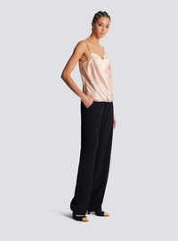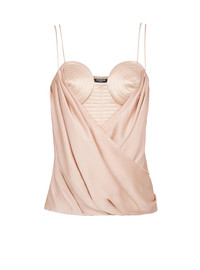 Strappy draped satin bustier top - Topstitched satin bustier - Sweetheart neckline - Reinforced bodice - Draped over top in matching satin - Visible gold metal zip fastening on the back with Balmain Paris-engraved slider - Cropped slim fit - Model measures 179cm and wears a size 36 - Main material: 100% silk - Made in Poland - Item: EF0AD305MH15